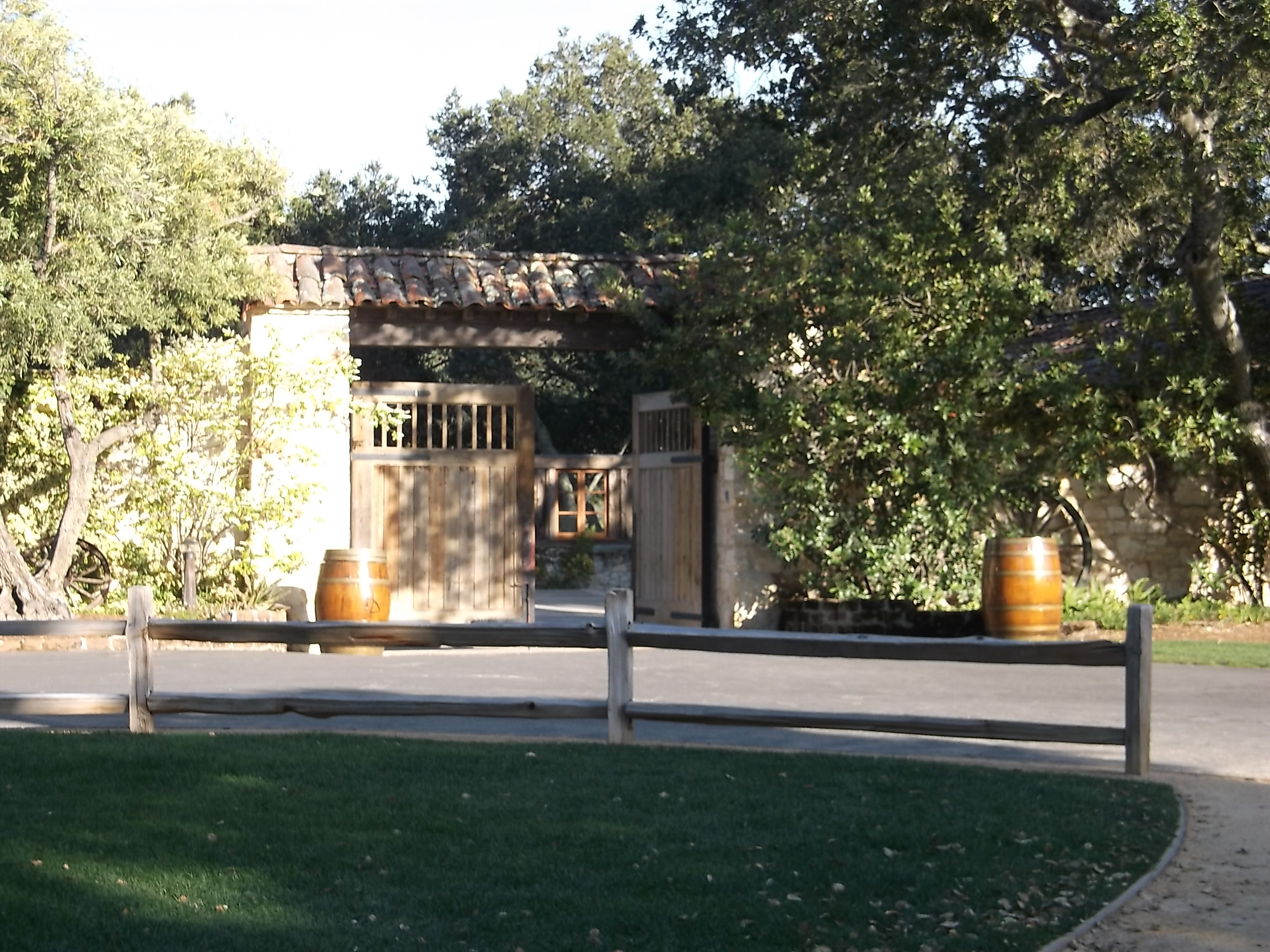 Rumored to be the first pool ever built in Carmel Valley and with a Hacienda building and with a “Charlie Chaplin” Guest Room, not too shabby. What most impressed me while walking the grounds… was what a spectacular wedding, presentation or charity auction… that could take place on the spacious Holman Ranch lawn. The grass was surrounded by panoramic mountain views and Carmel Valley sunshine, what a nice combo.